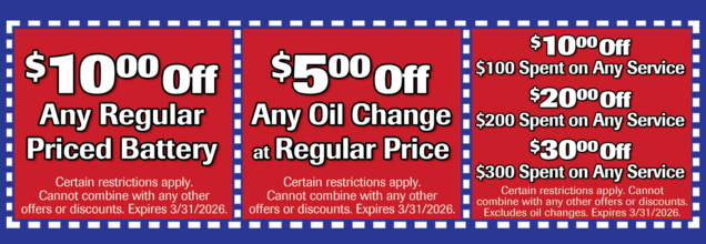 Every month we post new money saving coupons. Just print this page or show us on your smart phone with our new smart phone ready app.